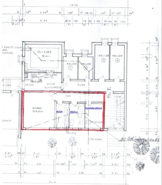 Küchenzeile. Das Tageslichtbad ist mit einer Badewanne, einem Waschtisch und einem WC ausgestattet. Der Separate Kellerraum befindet sich im Erdgeschoss.