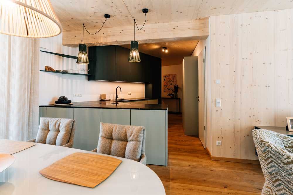 Großzügige Raumaufteilung, hohe Decken und das wohlige Flair von Holz.