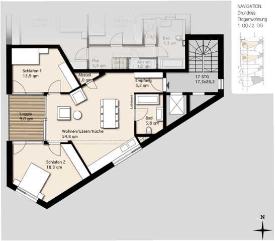 - Großzügiger Wohn-/Essbereich mit Zugang zur Loggia (Süd-/Westausrichtung)