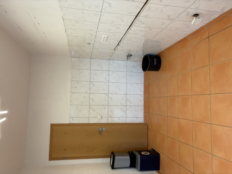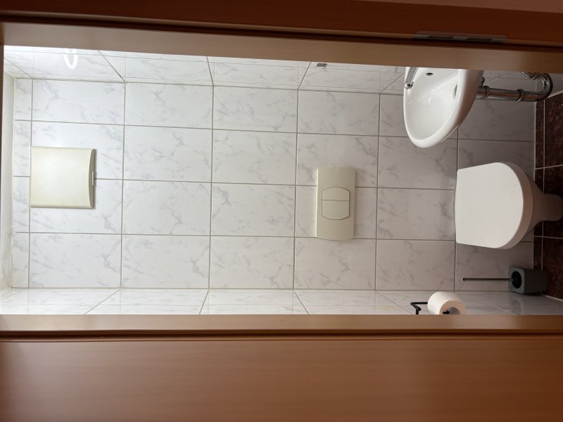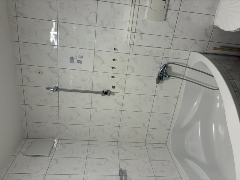 Boden ist komplett gefliest, Fußbodenheizung.