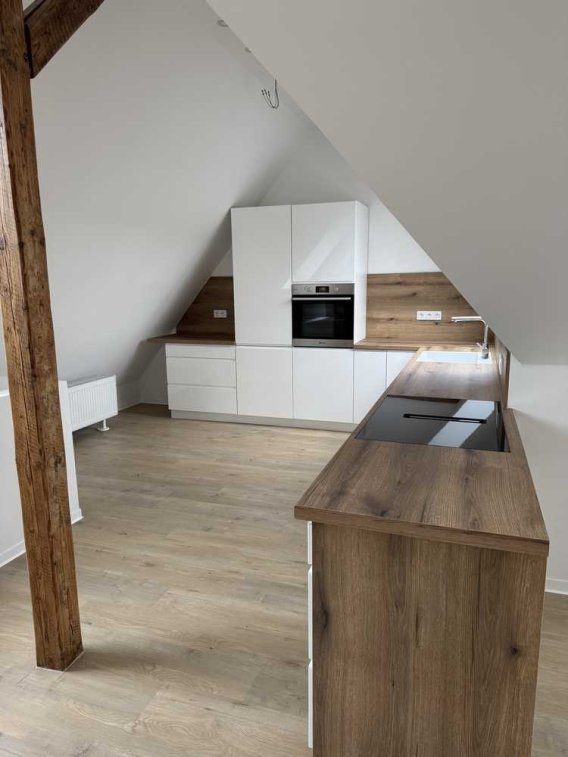 - neue Einbauküche 2025 eingebaut inklusive Elektrogeräte: Kühlschrank mit Tiefkühltruhe, Backofen, Induktionskochfeld mit Dunstabzug und Spülmaschine