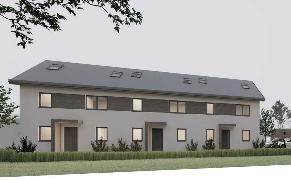 Die sechs Reihenhäuser sind klar auf Funktionalität und Ästhetik ausgerichtet und bieten großzügige Wohnflächen in einer harmonischen Nachbarschaft. Jedes Reihenhaus erstreckt sich über zwei Etagen plus nicht ausgebautes Dachgeschoss und zeichnet sich durch eine offene, lichtdurchflutete Raumgestaltung aus. Der Wohn- und Essbereich im Erdgeschoss öffnet sich zu einem privaten Garten und schafft Raum für persönliche Entfaltung und gemütliche Stunden. Hochwertige Materialien und durchdachte Grundrisse sorgen dafür, dass die Bewohner sich sofort zu Hause fühlen.