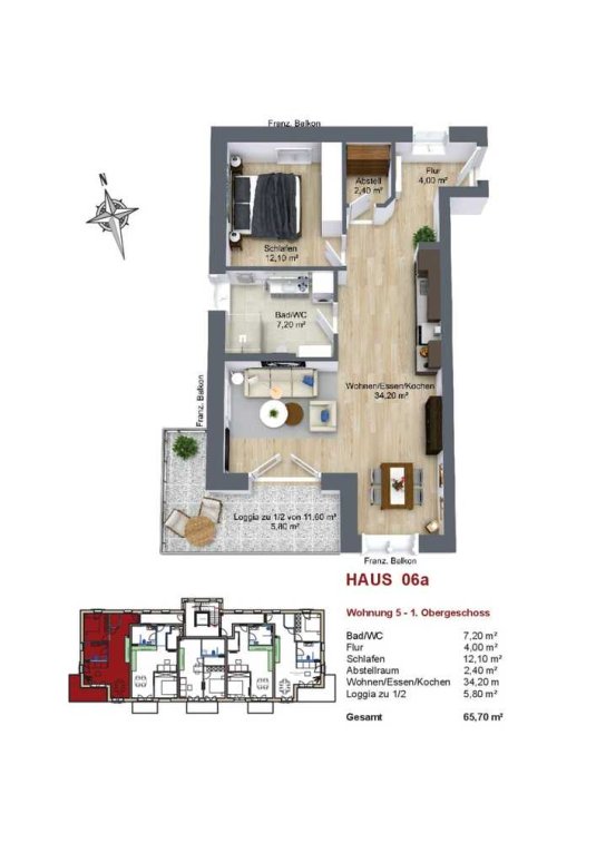 Diese helle 2-Zimmer-Wohnung mit ca. 65,7 m² Wohnfläche befindet sich im 2. Obergeschoss eines neu errichteten Mehrfamilienhauses in Haag in Oberbayern. Die Wohnung überzeugt mit einem großzügigen lichtdurchfluteten Wohn- und Essbereich, einem Schlafzimmer, einem zeitlos-modern ausgestatteten Badezimmer (Tageslicht), einer praktischen Abstellkammer sowie zusätzlichen Stauraum im Keller.