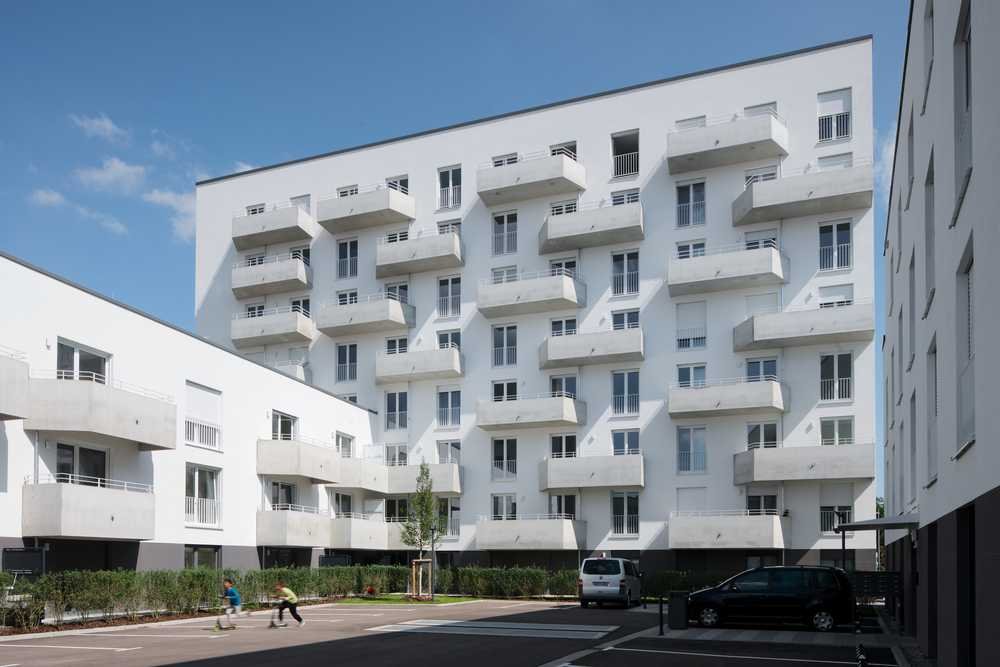 Das Neubauobjekt gliedert sich in drei Bauteile und bietet insgesamt 102 Mietwohnungen mit vielseitigen