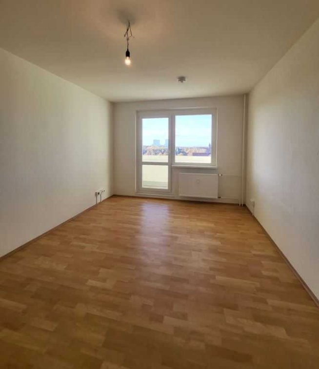 Die 2-Raumwohnung liegt im 5.Obergeschoss und bietet einen klassischen Schnitt. Über den Flur, erreichen Sie das Badezimmer, welches mit einer Dusche, einem Waschbeckenunterschrank und einem kleinem E-Handtuchheizkörper ausgestattet ist. Das große Wohnzimmer verfügt über eine offene Küche und einen großen Balkon. Vom Wohnzimmer aus gelangen Sie ins Schlafzimmer. In allen Wohnräumen und im Flur ist ein Laminatboden verlegt.