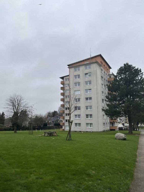 Die Wohnung befindet sich in der 6. Etage eines Mehrfamilienhauses (Hochhaus) in Flensburg, Stadtteil Rude, Lundweg 2.