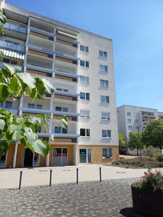 Die Wohnanlage liegt erhöht und man genießt einen wunderbaren Blick über die Dächer Grimmas. Der Außenbereich