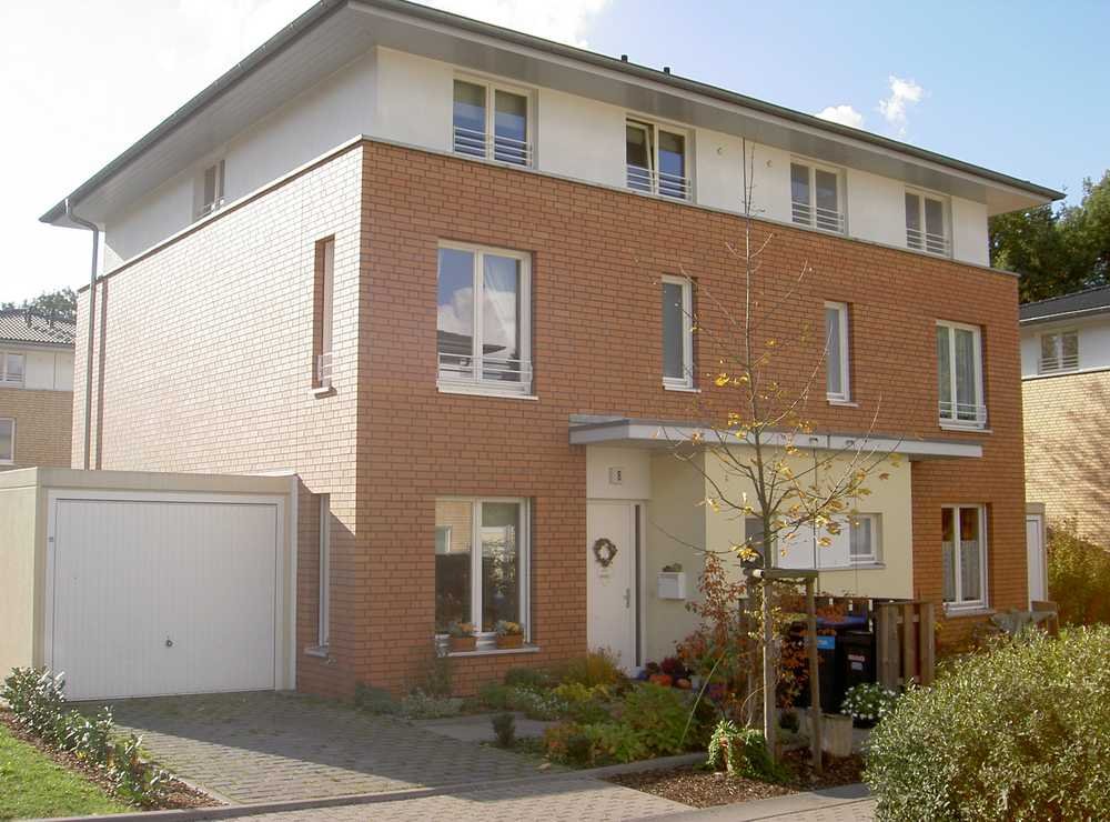 Die Bilder zeigen ein - bis auf die Farbe der Klinker - baugleiches Doppelhaus in der Straße, das bereits über eine Garage verfügt.